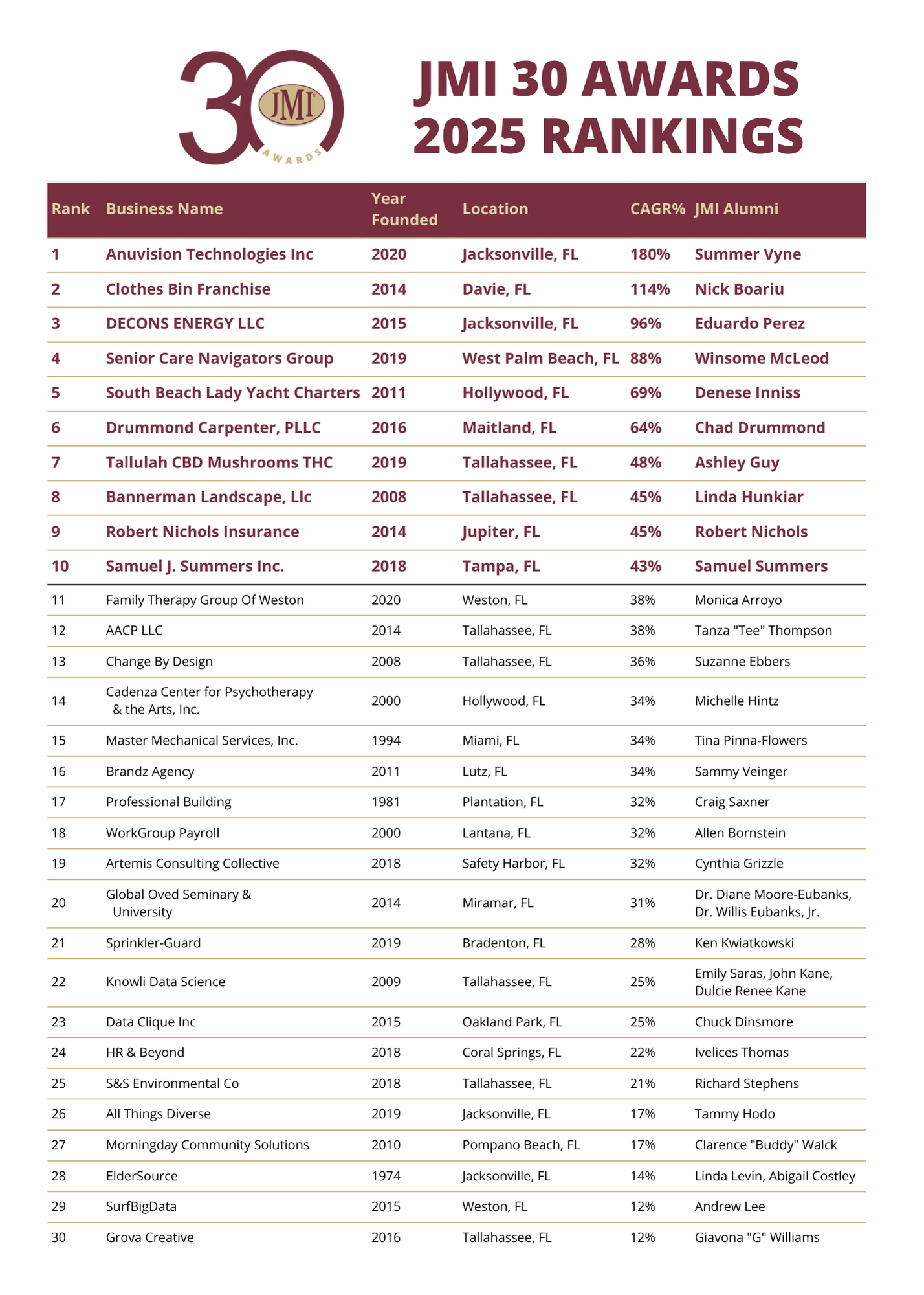 Your company’s numerical ranking will be revealed at the 2025 JMI 30 Celebration Event on June 13, 2025